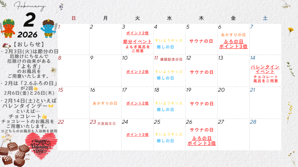 2月度 イベントカレンダー